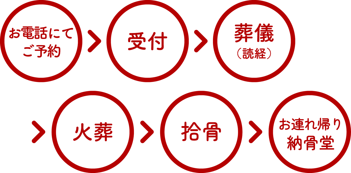 火葬は葬儀に入っていただいた順番に行いますので、当日もしくは翌日になります。火葬終了後、施主様へ電話にてご連絡をさせていただきます。